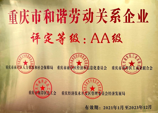 近日,重慶市人力資源和社會(huì)保障局授予重慶中訊控股(集團(tuán))有限公司等多家企業(yè)“重慶市和諧勞動(dòng)關(guān)系AA級(jí)企業(yè)”稱(chēng)號(hào)。2021年4月14日我司人力資源部代表受邀參加“重慶經(jīng)開(kāi)區(qū)市區(qū)共建和諧勞動(dòng)關(guān)系綜合試驗(yàn)區(qū)創(chuàng)建總結(jié)暨經(jīng)驗(yàn)交流會(huì)”以及獎(jiǎng)牌的授牌儀式。
