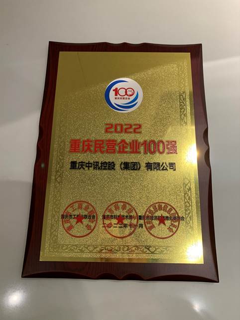 重慶中訊控股(集團)有限公司再次榮膺《2022重慶民營企業(yè)100強榜單》,名列民企百強第52位!