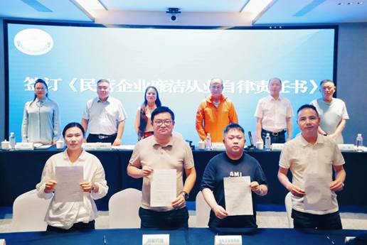 會議傳達(dá)學(xué)習(xí)習(xí)近平總書記在民營企業(yè)座談會上重要講話精神,審議通過了相關(guān)人事任免事項,總結(jié)了全區(qū)清廉民企、清廉商會建設(shè)階段成效,同時與會企業(yè)簽訂《廉潔從業(yè)自律承諾書》。