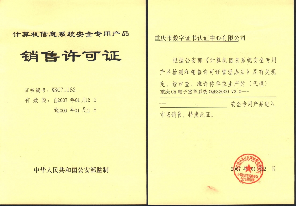 公司獲得了國家密碼管理局頒發(fā)的《電子認(rèn)證服務(wù)使用密碼許可證》、國家工信部頒發(fā)的《電子認(rèn)證服務(wù)許可證》、公安部頒發(fā)的《計算機(jī)信息系統(tǒng)安全專用產(chǎn)品銷售許可證》、擁有“雙軟”和國家級高新技術(shù)等資質(zhì)稱號,是國家發(fā)改委信息化示范單位,國家信息產(chǎn)業(yè)基地龍頭企業(yè)。