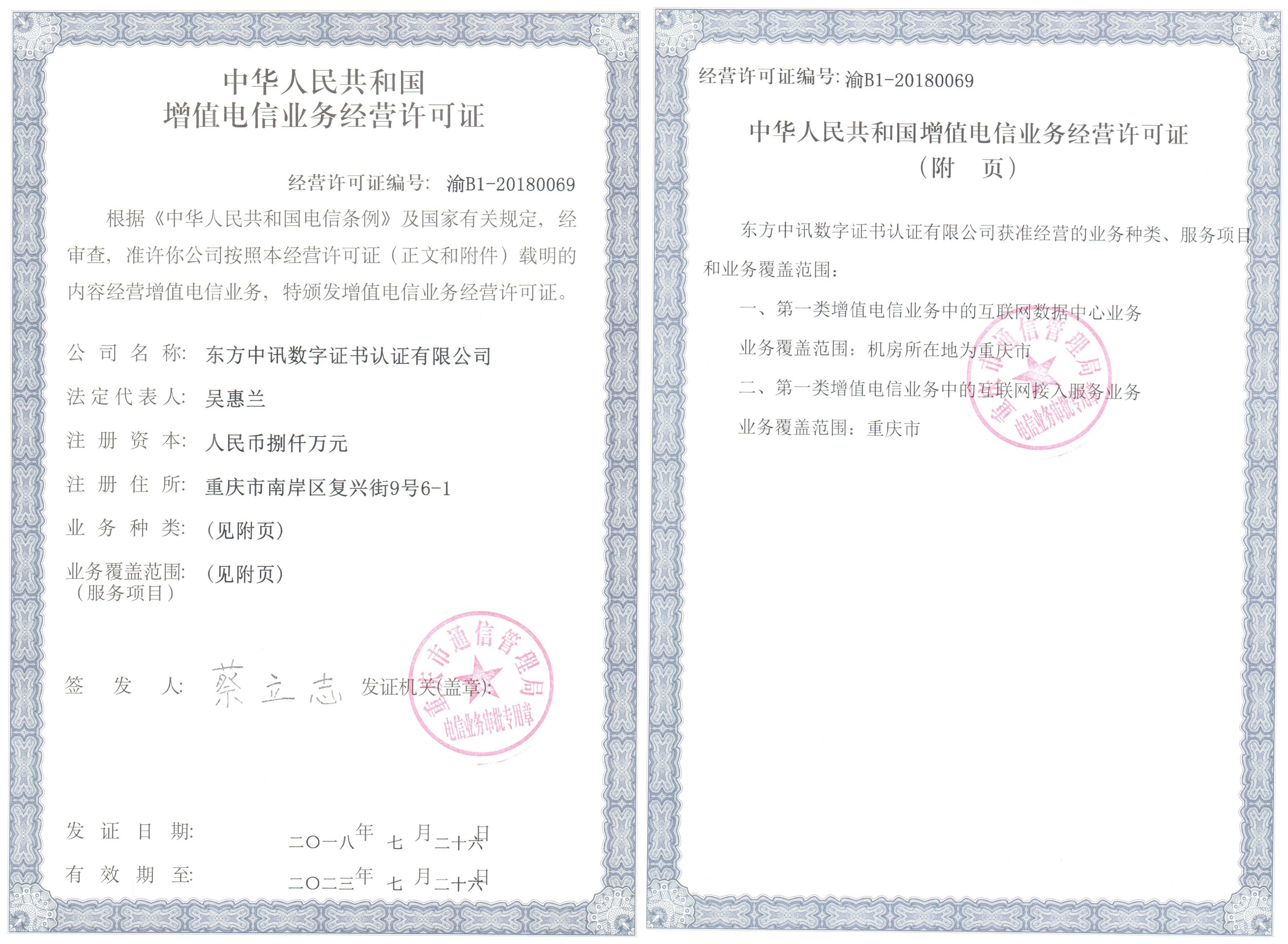 東方中訊數(shù)字證書認(rèn)證有限公司成立于2001年,注冊資本3000萬元,主要從事電子認(rèn)證服務(wù)、信息安全產(chǎn)品研發(fā)與服務(wù)、信息安全服務(wù)、增值電信業(yè)務(wù)等業(yè)務(wù),是國家密碼管理局、工信部許可的全國性合法從事電子認(rèn)證服務(wù)的第三方權(quán)威機(jī)構(gòu),是可以信賴的、專業(yè)的信息安全服務(wù)機(jī)構(gòu)。
